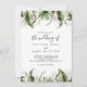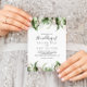 Este verde tropical de ouro, o casamento de convite é perfeito para um casamento de destino. O design apresenta ouro de aquarela pintada à mão e palmeiras verdes e folhas de bananeiras com flores cor-de-rosa bem organizadas em belos buquês.