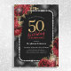 Elegante Black Dourado Red Floral 50º Convite de aniversário. Este design apresenta uma elegante mistura de preto, ouro e vermelho com um sofisticado motivo floral. O pano de fundo é um preto luxuoso, que contrasta lindamente com o intrincado ouro e o tom floral vermelho que enquadra as bordas. Utiliza-se ouro elegante e tipografia vermelha, acrescentando um toque de opulência e refinamento. A combinação harmoniosa dessas cores e o delicado design floral cria um sentimento convidativo e comemorativo, perfeito para marcar um aniversário marcante.
