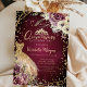 Convites Dourado Vestido Tiara, Borgonha Floral Quinceañera