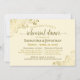 Este belo convite para jantas de ensaio é simples e elegante. Apresenta texto dourado sobre fundo branco esbranquiçado marfim ou creme, com folhas de alumínio folheadas ou filigranas de ouro nos cantos. Ele tem informações sobre o ensaio de casamento, assim como sobre o janto comemorativo que se segue. Perfeito por manter a noiva informada sobre todas as festividades pré-casamento.