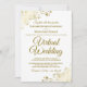 Só porque você foi forçado a mudar seu casamento para uma cerimônia virtual, não significa que você não pode enviar belos convites. Este convite elegante apresenta a inscrição em rico dourado sobre um fundo branco com um filigre floral herdado ou caramujos e espirais nos cantos. Uma maneira perfeita de convidar seus amigos e família para compartilhar em seu dia especial, mesmo que eles não possam estar lá pessoalmente.