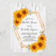 Um fundo de madeira branco rústico. Um quadro geométrico dourado. Com o texto: Chá de panela e o nome da noiva na frente, escrito com um moderno estilo escrito à mão. Letras negras.