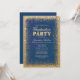 Convites Dourados e à Festa de formatura. Faux Gold Foil glitter sobre fundo azul. Texto brilhante. Fácil de personalizar.