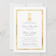 Convites Dourados para Casamento de Abacaxi Tropical com um ouro de abacaxi na frente e no centro com um padrão impressionante de abacaxi no verso com bar de sotaque para o site de casamento url.