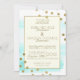 O convite para casamento da base azul de aqua azul festiva e moderna, emoldurado em ouro e acentuado com pontos de confete de ouro impressos com convite para casamento formal de design.