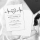 Este convite para a graduação temática de batimentos cardíacos em preto e branco apresenta uma elegante mistura de fontes clássicas serif e tipografia moderna e limpa para um eterno, mas contemporâneo. A linha do coração do ECG acrescenta um toque significativo, perfeito para celebrar um formando médico ou de enfermagem. O fundo em ambos os lados é branco, mas todas as cores — incluindo a linha de batimento cardíaco — podem ser personalizadas para combinar as cores escolares ou a forma favorita do formando. Disponível como um convite impresso ou um arquivo digital para download para e-mail ou impressão local!