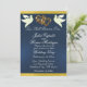 Convites Dovs, Corações e Fita, Código QR - Azul/Dourado