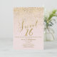 Convites de DOZE ANOS Rosa Corado & Confetes Dourados.