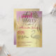 Elegante, sofisticado, exclusivo, silhueta de flamingo em relevo dourado combinado com um adorável fundo rosa e dourado brilhante com folhas de palmeira douradas. Convite de aniversário de 16 anos Sweet 16 moderno e atraente.