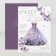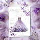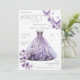 Este requintado design apresenta uma impressionante ilustração em aquarela de um lindo vestido roxo, elegantemente rodeado por borboletas roxas delicadas a esvoaçar, adornado com toques de prata. Irradiando elegância e graça, este convite prepara o cenário para uma celebração inesquecível. Quer esteja a planear um jantar sofisticado, uma recepção no jardim ou um baile glamoroso, este convite promete infundir o evento com beleza encantadora e requinte. Convide os seus entes queridos para se juntarem às festividades e criar memórias inesquecíveis no ambiente mágico de roxo e prata.