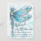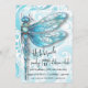 A libélula azul adorável fica à esquerda deste aniversário personalizável ou convite de brunch. A Dragonfly é "levantada" acima do fundo azul-aqua girado. O verso da placa apresenta as espirais azuis que aparecem na frente deste convite. Altere o tipo de festa (brunch, aniversário, new home) e adicione todos os detalhes de sua festa.