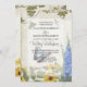 Romântico. Simples. Floral de jardim elegante. A trabalho de arte pintada à mão por Audrey Jeanne Roberts é diretamente do jardim com flores bonito de delfinium, flores amarelas de Susan de olhos negros (Rudbeckia) e borboleta azul de morfo com uma libélula. Perfeito para um estilo antigo de casamento rústico ao ar livre, casamento de quintal inspirado na natureza, cerimônia de boho country ou uma recepção de fazenda ou de celeiro. Cada pedaço desta coleção tem um layout de design diferente para um estilo novo, moderno, contemporâneo. Um convite de casamento completo e um conjunto de produtos de decoração de recepção está disponível para corresponder.Direitos autorais da arte Audrey Jeanne Roberts, todos os direitos reservados.