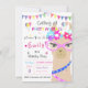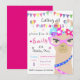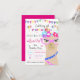 Convites de festa de aniversário do drama da moda lhama, Lhama da moda com óculos rosa e óculos coloridos e grinaldas e balões coloridos