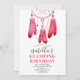 Uma simples caçadora de sonhos, estilo "boho", cor-de-rosa, com convite de aniversário de vidro de penas. Penas pintadas. Personalize com suas informações e adicione sua assinatura nesta tipografia de script de tendências. Estilo boêmico russo da terra. Branco sólido na parte de trás do convite.