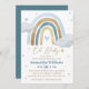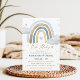 Celebrar a mãe a ser com este convite de chá de fraldas sonhador! Apresentando um arco-íris de aquarela macia em tons azuis e dourados, nuvens fofinhas e estrelas cintilantes, este design inspirado no boho parece um abraço quente. Criado para aqueles que amam uma mistura de elegância e capricho, este convite estabelece o clima perfeito para um encontro mágico.