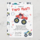 Duas Crianças de segundo aniversário Rápido Monster Car Trucks O Convite apresenta caminhões de carros monstros bonitos e coloridos com o texto "Duas Rápidas" no moderno roteiro de tipografia vermelha acentuado com o número 2 e rabiscos. Perfeito para as crianças na segunda festa de aniversário. Envie o e-mail ou simplesmente baixe o convite digital compartilhável para download. Projetado pelo Evco Studio. Para obter informações sobre a coordenação de itens, consulte www.zazzle.com/store/evcostudio