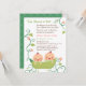 Duas ervilhas bonitinhas, elegantes, num convite para mamães de chá de fraldas, que estão esperando duas meninas! Design apresenta meninas adoráveis em uma cápsula com muitos fios, flores e folhas em forma de coração (representando muito amor pelos gêmeos). Na página inversa estão pontos dispostos em forma de diamante diagonal. A paleta de cores de tons verdes é excelente de seu efeito natural e tranquilo com tons de rosa. Excelente de correspondência com qualquer tema relacionado ao jardim também! Personalize facilmente com os detalhes do seu partido.