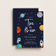 Duas da Lua! Convite de festas do segundo aniversário de Tema de Espaço Fácil. Marinho fundo azul com estrelas, lua, planetas, astronauta e foguete.