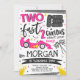 Dois Convites de festas de carros de corrida cor-de-rosa de segundo aniversário rápido Todos os designs são © PIXEL PERFECTION PARTY LTD
