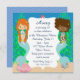 Esta linda convite de festas de piscina de aniversário no mar apresenta duas sereias, uma sereia étnica com pele escura e cabelo, e uma sereia com cabelo vermelho nas caldeiras. As sereias estão nadando no oceano. Este convite de sereia inclui texto personalizado para personalizá-lo. Alguns gráficos por ilustrações AMB.