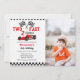 Temas de corrida, dois carros rápidos correm em convites de aniversário de crianças bonitas com uma corrida de carros vermelhos. Um tema de carro de corrida bonito para uma festa de segundo aniversário com ilustração de um carro vintage vermelho com as palavras "Crescendo muito rápido."