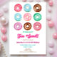 Este é um convite para dois segundos aniversários doces com um tema de rosquinha e aspersores. A design é constituída por rosquinhas com glacés de chocolate azul, rosa, roxo, verde e castanho e aspersores. Fez um segundo aniversário!