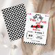 Um convite encantador para a comemoração de aniversário do seu filho! Dois Tema de Rádio Vermelho Rápido incluem um carro vermelho, uma bandeira de corrida de carros e chamas. Você pode PERSONALIZAR facilmente este design com suas informações! Se você precisar coordenar ITENS CORRESPONDENTES, consulte nossa coleção ou armazenamento correspondente.