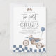 Dois Convites de festas de segundo aniversário de moto azul rápido Todos os designs são © PIXEL PERFECTION PARTY LTD