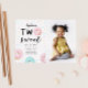 Placa de modelo de segundo convite de aniversário de de um de segundo cômodo para uma festa de aniversário de tema de rosquinha com ilustração de rosquinha com borrachas. O texto no topo diz "dois doces". Personalize este produto adicionando o nome do seu filho, as informações do partido e uma fotografia.
