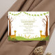 a design mostra um convite chá de fraldas na tipografia verde-oliva no meio e uma floresta agradável com muitas árvores e duas girafas bonitinhas ao redor. esta design é fofa e será ideal para o seu chá de fraldas.