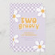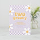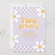 Dois Groovy. Convite de aniversário de 2 anos com inspiração retrô com fontes estilo anos 70 e margaridas e padrão xadrez.
