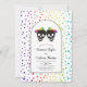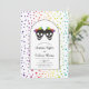 Duas noivas de crânio e confete em cores do arco-íris... o convite para casamento lésbico do Halloween. Esta design de casamento apresenta um arco com o seu texto e os crânios de duas noivas com arcos em cores arco-íris e confete colorido ao seu redor. O verso inclui um padrão de confete colorido.