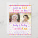 Este primeiro convite de aniversário é perfeito para celebrar o grande marco da sua gêmea. O convite diz: "Duas vezes como Nice, duas vezes como Divertido, (Nomes), estão virando um". As cores e o texto personalizados estão disponíveis a pedido.