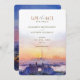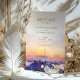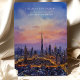 Capturar a essência de um casamento de destino fantástico com este cartão "Salve a Data" com trabalho de arte de cor d'água espantosa da icônica linha do horizonte de Dubai. A frente exibe um pôr do sol quente em tons de pincel, pêssego e lavanda, misturando-se lindamente sobre os marcos de Dubai, incluindo o majestoso Burj Khalifa. As cores se transformam perfeitamente em uma cena romântica do crepúsculo no verso, onde tons violeta profundos, laranja mole e azul-da-meia-noite destacam a linha do horizonte iluminada da cidade. Este cartão de salvamento artístico é perfeito para casais planejando um casamento sofisticado com um toque de elegância moderna. Ponha o tom para o seu dia especial com um design que combina talento artístico e detalhes luxuosos.