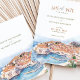 Este elegante cartão de casamento "Salve a Data" apresenta uma ilustração pitoresca de Dubrovnik, Croácia, mostrando a icônica arquitetura histórica da cidade e o cenário costeiro. O design do convite usa uma paleta de cores harmoniosa, misturando tons de terra quente como terracota e bege arenoso com legal tonalidades de azul-céu, cinzas ardósias e verde-macio. O cartão tem um estilo contemporâneo, mas clássico, combinando a tipografia moderna com delicados sotaques de guião, criando um aspecto sofisticado perfeito para um anúncio de casamento de destino. A parte traseira da placa complementa a parte frontal com um fundo aquoso correspondente, mantendo o design coeso e encantador. Ideal para casais planejando uma celebração romântica em um local atordoante, este convite dará o tom perfeito para o próximo evento.