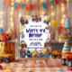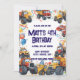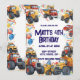 Haul in the birthday fun with this cheerful dump truck birthday invitation featuring bright watercolor vehicles ready to celebrate your little hauler's special day! Adorable dump trucks with smiling friendly faces lead the party alongside monster trucks, tractors, fire trucks, excavators, bulldozers, and cement mixers—some wearing cute party hats amid colorful confetti, bouncy balloons, and festive streamers.