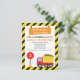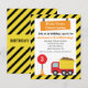 Uma festa de aniversário do tema da construção oferece muita diversão para os aniversários que adoram brinquedos e máquinas de construção porque há tantas ideias de festas com as quais trabalhar neste tema! Escolha esse convite que utiliza muitos elementos temáticos da construção como um caminhão de lixão vermelho e amarelo, um padrão de listras amarelas e pretas, placas de construção e cone. Crianças convidados vão ficar tão felizes e animados para receber este convite!