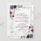 Crie o convite perfeito para o casamento com este azul tendencioso, burgundy marsala e design floral cor-de-rosa e verde-cor-d-água, com um fundo de mármore falso carrera, tipografia com guião manuscrito e pó de ouro falso. Copyright Elegant Invites, todos os direitos reservados.