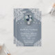 Convites para Casamento de Mason Jar, Luar Branco Dusty Blue Country - apresentam um fundo azul empoeirado ou azul de ardósia/aço com rendas brancas impressas, luzes de cordas e um jarro de pedras cheio de elementos florais, verde e muito mais. Exibir a coleção correspondente nesta página para localizar itens de coordenação.