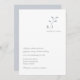 Um design botânico minimalista, com uma simples porrada em azul empoeirado e cinza com as iniciais do casal, perfeito para um casamento elegante. O RSVP correspondente está disponível em: https://www.zazzle.com/dusty_blue_leaves_minimalist_chic_wedding_rsvp_invitation-256109851332623767