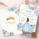 Convites Dusty Blue e Dourada Coroa Real Princesa Mexicana