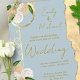 Convites Dusty Blue e Dourado Casamento Floral de Boho Russ