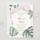 Design apresenta elementos tropicais com folhas de palma de aquarelas verdes e florais cor-de-rosa com estrutura geométrica dourada. Caligrafia ou tipo escrevendo com o trabalho de arte de design em cor dourada. Esta é uma coleção de mistura e combinação. Excelente para as comemorações do casamento!
