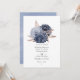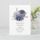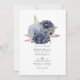 Rosa ouro elegante, marinho e convite para casamento de flores azuis empoeiradas personalizável para suas especificidades de evento. Ideal para qualquer tema ou casamento de jardim. O código QR no verso direciona para o seu local de casamento onde o pessoas pode aprender mais e rsvp.