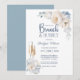 Este elegante e empoeirado brunch floral branco e azul e convite à borbulha encarna romance e beleza que captura a essência do amor e alegria em torno do seu próximo casamento. As rosas rosa vibrantes tomam o palco central, simbolizando amor, calor e compaixão. A tipografia personalizável permite personalizar o convite com seu nome, data de chá e todas as outras informações essenciais.