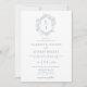Elegante Dusty Blue Floral Crest Monograma Convite de Casamento