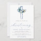 Convites Dusty Blue Floral Cross Baby Christening