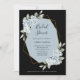 Este simples e elegante chá de panela de casamento apresenta folhas românticas de cor aquática de eucalipto e rosas azuis empoeirados e flores de hydrangea em um falso quadro geométrico dourado e um fundo negro e escuro.