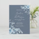 Dusty Blue Floral Elegant Script Wedding Invitation. Announce your special day with this exquisite wedding invitation, featuring a breathtaking dusty blue floral design. The delicate blooms and lush greenery create an elegant and romantic atmosphere, perfect for setting the tone for your wedding celebration. This invitation captures the essence of a timeless love story, with its sophisticated color palette and artistic floral arrangement. It's an ideal choice for couples seeking a touch of vintage charm and natural beauty for their momentous occasion. Let these beautiful flowers convey your joy and invite your loved ones to share in your unforgettable day.