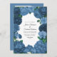 Convites Dusty Blue Floral Photo and QR Code Wedding
